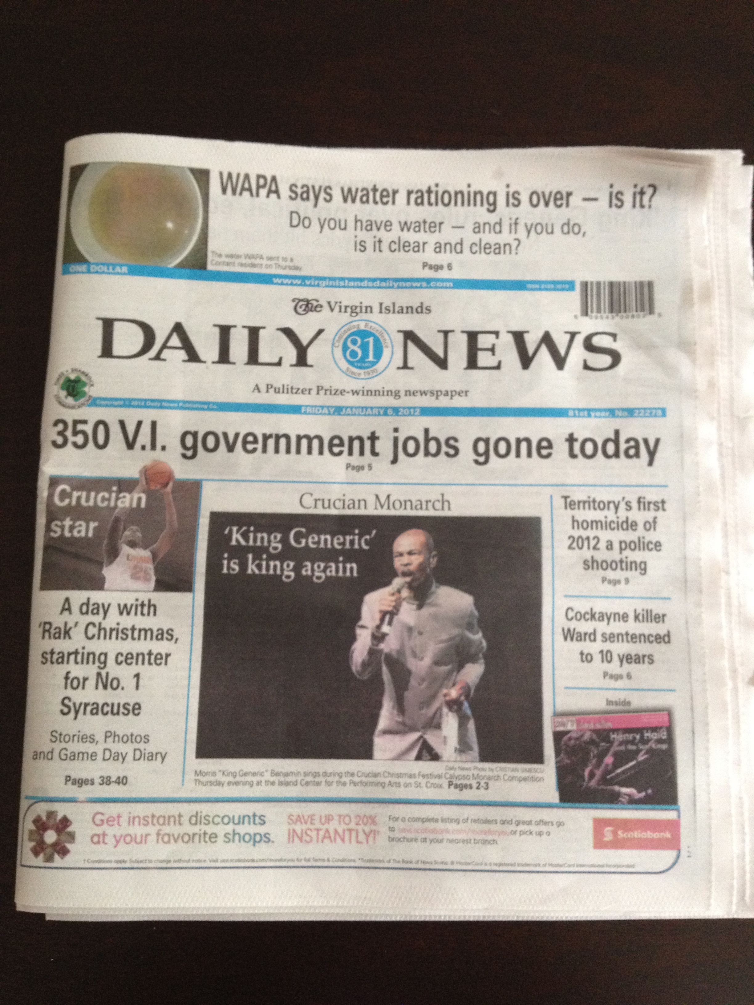 Today is “Three Kings Day,” or the Feast of Epiphany, in the Virgin Islands as well as in Puerto Rico and much of Latin America and the Caribbean; banks, federal offices, schools, and many businesses are shut. I gather it is the beginning of many holidays down here that we have never before really observed. I am all for holidays – more so when nothing is required of us. It is a little ironic then, that I was up until some ungodly hour trying to clear up once and for all the rest of the holiday detritus (except for cards – they are still arriving and I can’t bear to take them down quite yet; besides, it is nice to see photos and cards from all our family and friends that we miss). This morning, I was reading on-line that being 12 days after Christmas (12 days? seriously?) today, Three Kings Day, is considered the last official day of the holiday season. I had been worried that my decorations were up too long; now I can say I was doing it by the books and waiting for Three Kings Day.