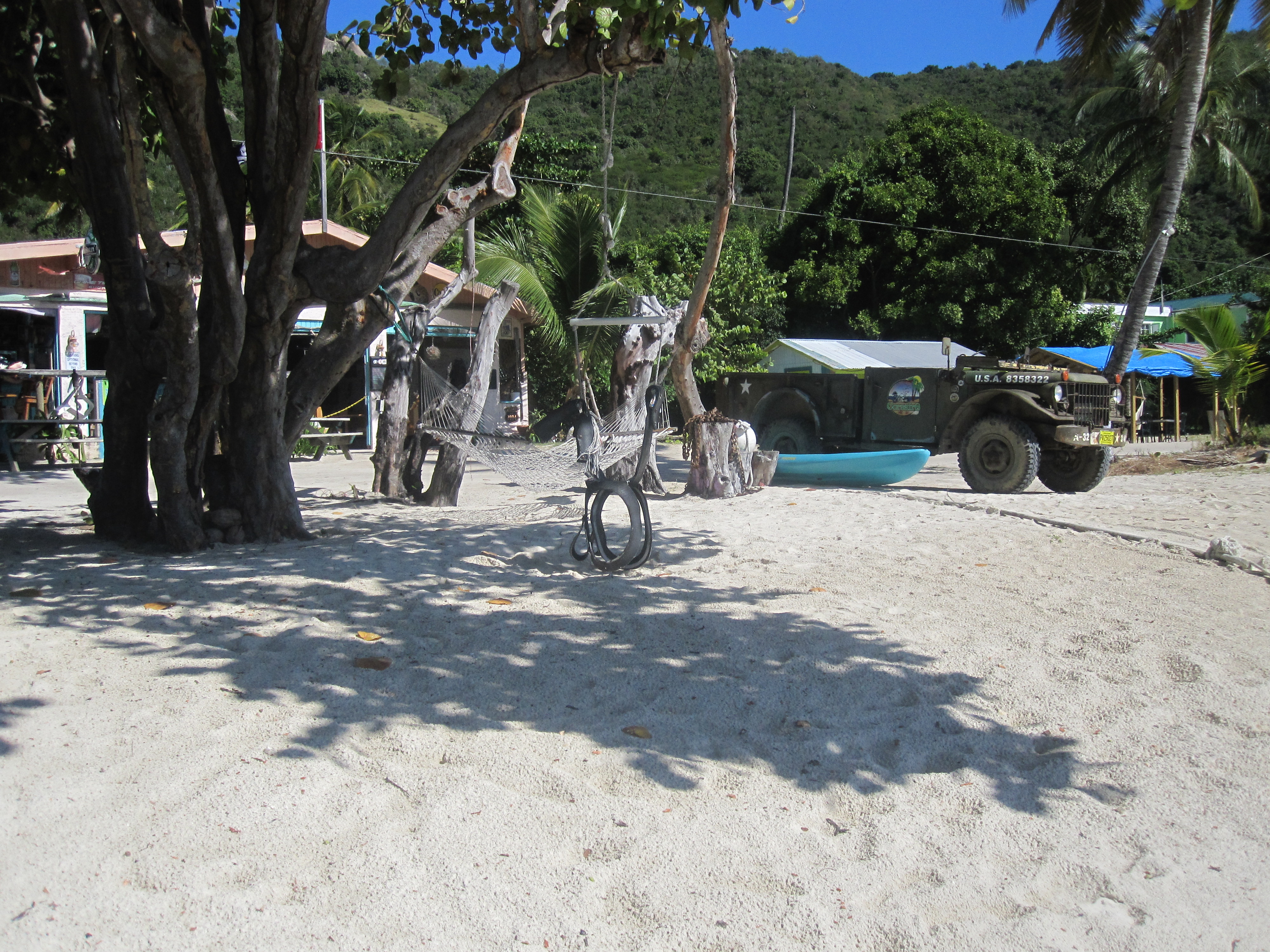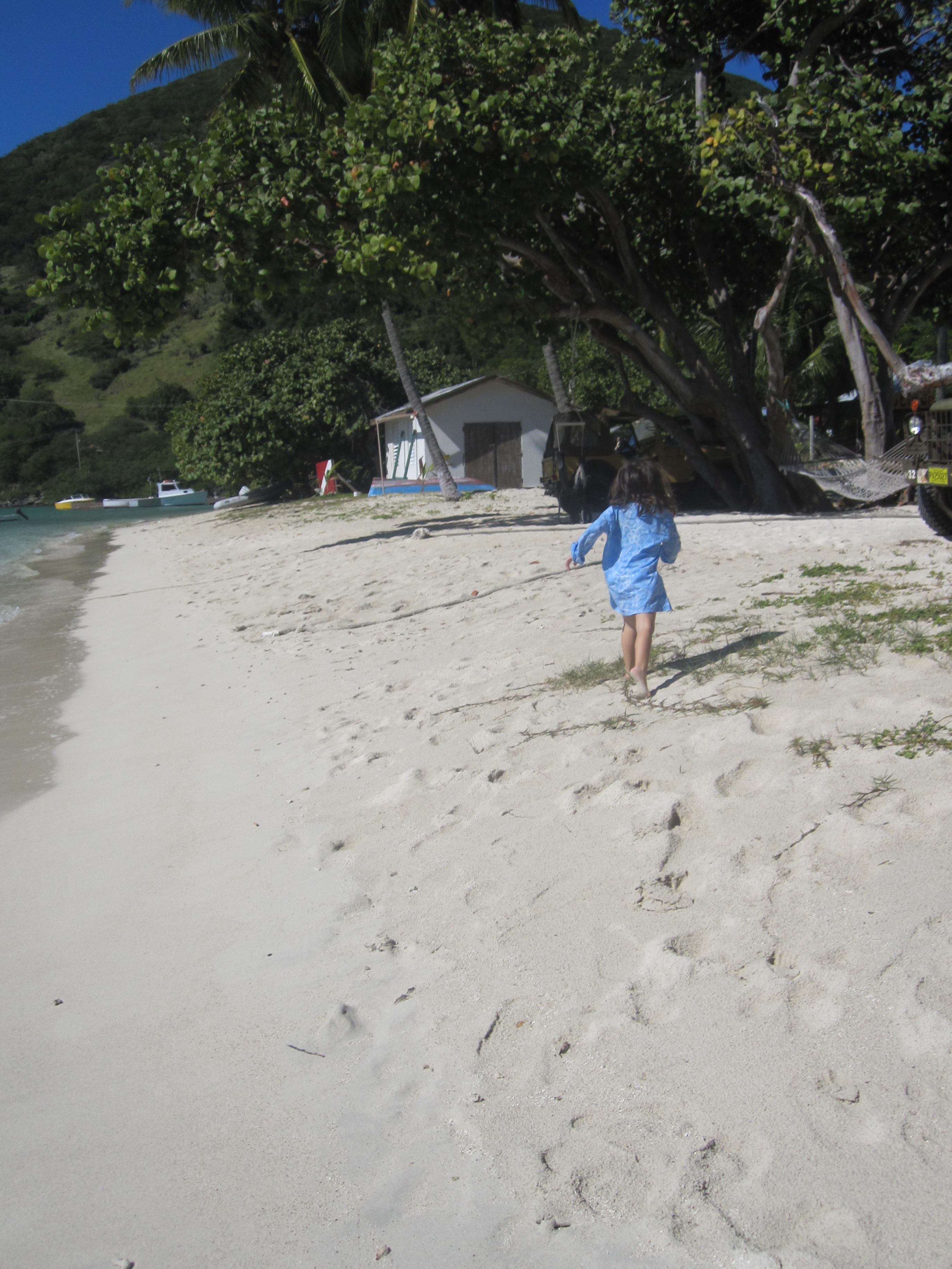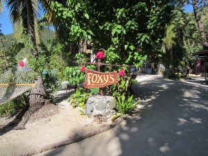 This was our third trip with Ocean (yes, his real name) and even though we didn’t have a plan in place, I knew he would come up with the right islands to motor around, the perfect spot for snorkeling (you have to take into consideration currents, waves, and Lord knows what else), and the best place for lunch with the Babies (as opposed to places where people happily drunk on rum flash each other – that will be another post about a chartered day out sans enfants). First stop: 30 minutes away on Jost Van Dyke to clear customs. Jost Van Dyke is 4 miles long, with a sandy main street bordering the water and hammocks in palm trees alongside. Besides being a beautiful and charming island with fewer than 200 full-time inhabitants, Jost is also famous for other things, among them: having the largest New Year’s Eve Party in the Caribbean (or, as it’s called there, Old Year’s Night); being the birthplace of the ‘Painkiller’ (a very rummy and incredibly tasty drink); and two pilgrimage-inducing bars– Foxy’s and the Soggy Dollar (there are obviously many other terrific things on the island that do not include alcohol, but those will have to be for future trips).